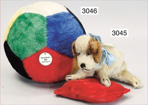 STEIFF Educational-Ball, 18 cm Durchm., Vorkrieg, mit Orig.-Schild, Papier, Blechrand, sehr guter Zust., selten so kompl.