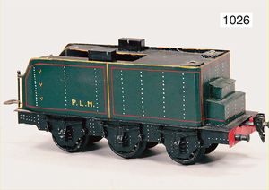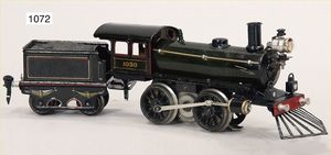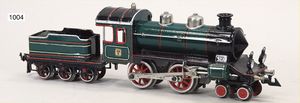 MÄRKLIN Schlepptenderlok B, 1030, 20V, altes Märklin-Zeichen, grün/schwarz, später angebauter Kuh-Catcher, 2-achsiger Tender, kl. Stellen ausgebessert