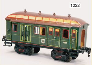 MÄRKLIN Kaiserwagen, Spur 1, mit Personenwagen-Einrichtung, 1841 K, grün, 4-achsig, 27 cm, restauriert