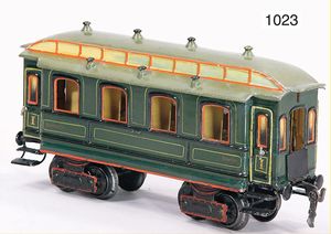 MÄRKLIN Uralt, 1541, Personenwagen, Blech handlackiert, grün, 29 cm, mit Inneneinrichtung, einige Stellen farbl. ausgebessert, insgesamt guter Zust.
