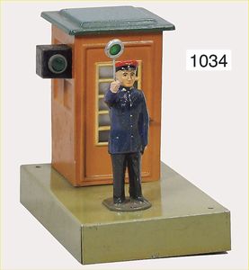 MÄRKLIN 13863, elektromagnetischer Bahnbeamter mit Kelle u. Bahnwärterhäuschen, Grundplatte 12 x 7,5 cm, guter Zust.