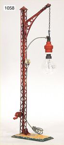 MÄRKLIN Schranke mit Halteschild, Blech handlackiert, 32,5 cm, guter Zust., dazu einige Oberleitungsmasten