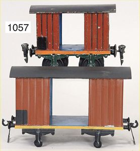 MÄRKLIN Uralt, Spur 1, Gepäckwagen, altes Märklin-Zeichen, Blech handlackiert, 12 cm, dazu 1 Spur 2 Gepäckwagen, ohne Achsen, restauriert