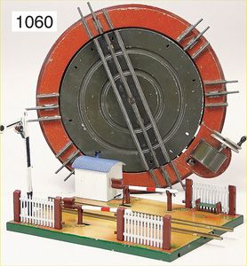 MÄRKLIN Spur 0, Bahnübergang für Modellgleise, mit Signal u. Bude, Bude übermalt, mit 2 Schranken, dazu 1 Handdrehscheibe, Spur 0, elektr. Ausführung
