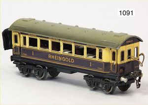 MÄRKLIN Spur 0, 1748, 4-achsiger Rheingoldwagen, 24 cm, Celluloid-Scheiben fehlen, mit Inneneinrichtung, bespielt, guter Zust.