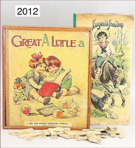 Puzzle ,,Great A little a“, England, ca 1920, Holzkasten mit Anleitung, wohl weitgehend komplett, auf Vollständigkeit nicht geprüft
