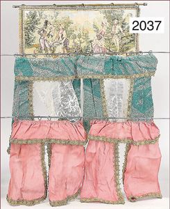 Puppenstubenwandteppich, 30x16 cm, für herrschaftliche Stube, oder gr. Puppenhaus, dazu 3 Vorhänge, 18x19 cm
