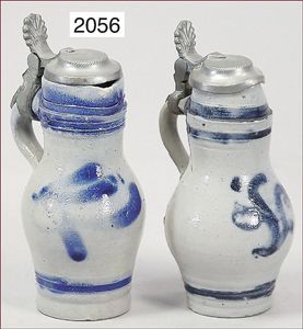 Konv. Puppenstubenausschmückungsteile, Zinn, Essig- und Ölhalter, Glas durch Tassen ergänzt, Jugendstiluhr, Blech, geprägt, 5,5 cm, kl Bierkrug, Glas, Blech, 1 Bildrahmen, Messingblech, vergoldet, wohl EHRHARD & SÖHNE
