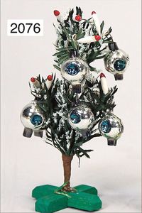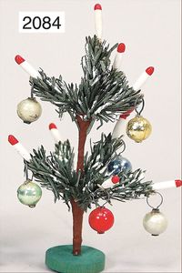 Puppenstuben-Weihnachtsbaum, 10,5 cm, mit Kerzen u. Spiegelglaskugeln, im Orig.-Kart., Deckel fehlt
