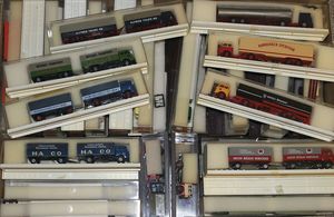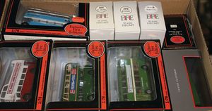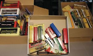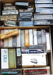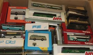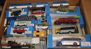 Konv. ca. 50 Omnibusse, darunter auch einige Pferdekutschen mit Pferden, bis auf 3 Teile alles in Orig.-Kart., in gutem bis neuwertigem Zust., H0, untersch. Hersteller