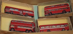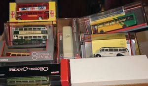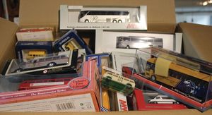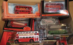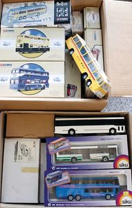 Konv. ca. 40 Teile, Busse, größtenteils im Orig.-Kart., neuwertig, versch. Maßstäbe, H0, HB Modelle, Corgi, einige limited edition