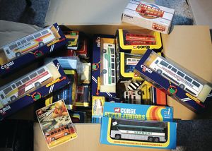 Konv. ca. 40 Omnibusse, z.T. in Orig.-Verpackung, guter bis neuwertiger Zust., Maßstab 1:50 u. 1:70, Hersteller Corgi