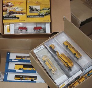 ca. 70 Teile Post, Pkw, Busse, Nutzfahrzeuge, Fahrzeugpackungen, Wiking, Rietze Automobile, Brekina, Post Sonderserien, u.a. die Postbeförderung der DDR, alles neu im Kart.