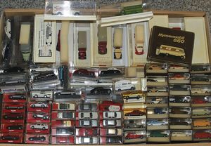 gr. Konv. Handarbeitsmodelle, 1:76, u. andere Maßstäbe, Model Bus company, pirates models, historic british road vehicles, road transport, weitgehend alles im Orig.-Kart., ca. 50 Teile