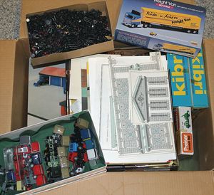 1 Kart. ca. 20 Teile Kibri, Vollmer, Bausätze, nicht montiert, neu im Kart., Gebäude, Fahrzeuge