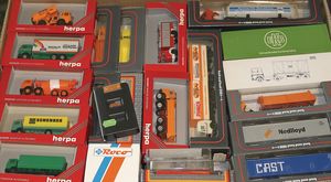H0, überwiegend Lkw, Nutzfahrzeuge, Busse, einige Pkw Modelle, Wiking, Herpa, Brekina, dazu Sonderpackungen, alles neuwertig, Orig.-Kart.