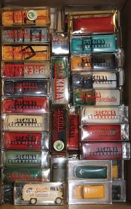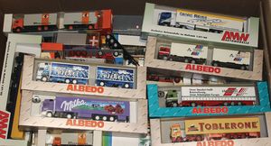 H0, Lkw, ca. 90 Teile, Albedo, AMW, u. andere, viele Werbemodelle, Bierwagen, Schokolade…, alles neuwertig, Orig.-Kart.
