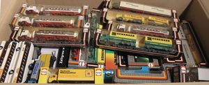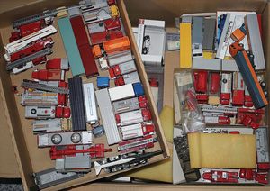 gr. Konv. ca. 150 Teile, Lkw, Nutzfahrzeuge, teils kl. Fehler, teils neuwertig, Orig.-Kart., bis passend zu H0