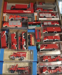 ca. 60 Teile Modellautos, H0, Feuerwehrmodelle, untersch. Hersteller, ohne Kart., teils kl. Fehler, meist sehr guter Zust., teilw. auch ältere Wiking Modelle