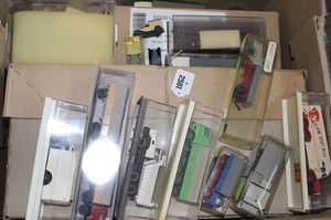 Konv. ca. 30 Teile, Preiser, Modell-Bausätze, H0, dazu 40 Teile Busse, H0, Hammer, Herpa, Norex, viele neu im Kart., dazu 20 Teile andere Hersteller