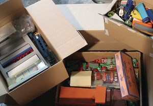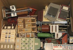 Konv. 3 Kart., Kunststoffhäuser f. Eisenbahn, teils leicht beschädigt, teils in gutem Zust., versch. Gr.