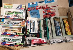 Konv. Busse, 1:24/1:35, sowie andere Größen, Blech- und Kunststoffteile, ca. 30 Teile, meist neu im Kart., untersch. Hersteller