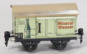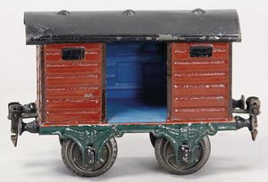 MÄRKLIN Uralt, Spur 1, gedeckter Güterwagen, Blech handlackiert, altes Märklin-Zeichen, 2-achsig, 15,5 cm, guter Zust., mit kl. altersbed. Lackfehlern