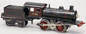 MÄRKLIN Spur 0, R13040, Schlepptenderlok B, 20 V, schwarz mit roten Zierlinien, altes Märklin-Zeichen, 30,5 cm, teilw. farbl. ausgebessert, ca. 1927