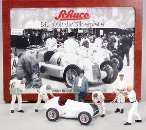 SCHUCO Die Welt der Silberpfeile, Studio I, Mercedes Benz, Silberpfeil 1936, mit Figuren, Replika, neuwertig, Orig.-Holzkiste