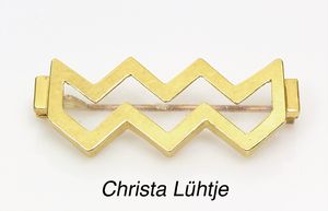 Brosche, CHRISTA LÜHTJE, München 1989, GG 900/000, Onyx-Platte blattförmig geschnitten, ca. 63 x 18 mm