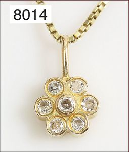 Collier, GG 585/000, mit Karabiner, 47 cm, Anhänger GG 750/000, Brillant 0,25 ct w-piquet, total 14,8 g