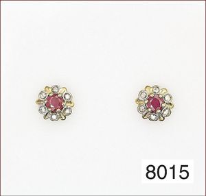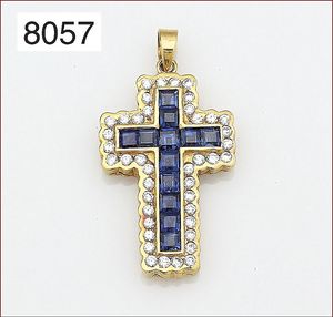 Anhänger, GG 916/000, Rubincabochon ca. 10 ct, 6 Smaragde ca. 0,65 ct, 2 Rubincarres ca. 0,25 ct, 12 weiße Saphire ca. 0,8 ct. H = 35,5 mm