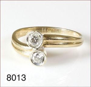 Ring, GG 750/000, 1 Brillant ca. 0,33 ct, tw/w-si, (Natural an einer Facette), 2 Saphir-Dreiecke, RW ca. 50, total 7,2 g