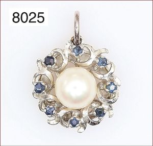 Perlring, WG 750/000, 1 Saphir, 8 Diamanten ca. 0,08 ct weiß, 1 Akojaperle ca. 7,5 mm, RW ca. 58,5