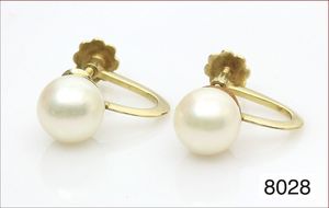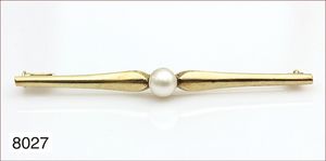 Akoja-Perlenkette, WG 585/000, Schließe mit 6 Rubinen, 1 Akoja-Perle, Länge ca. 68,5 cm, D = 7,5 - 7,8 mm