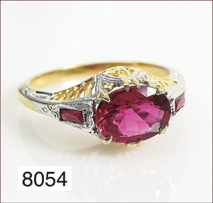 Ring, GG/WG 916/000, Turmalin fac. ca 2,20 ct (sehr schöne Farbe), 2 Spinell-Baguettes, RW ca. 55