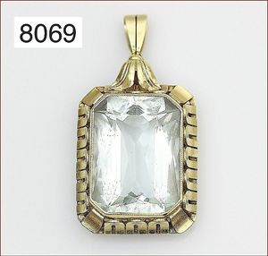 Anhänger, GG 585/000, 3 Brillanten, cognac ca. 0,08 ct, 1 Aquamarien-Tropfen, 3 Iolite/Tansanite?, 2 Topase, 1 Quarz-Tropfen, Schlaufe zum Aufklappen, ca.,25,5 x 34,0 mm