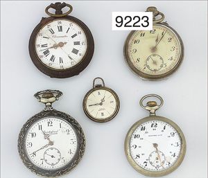 Lot: 5 Taschenuhren, u.a. 1 x " Beamtenfreund" System Glashütte um 1910, 1 x Eisen Chronometre, D = 30 - 54 mm, zum Ausschlachten !