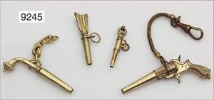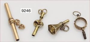 Lot: 3 Gold-Taschenuhrenschlüssel, 1 x 585/000 mit Ratsche, 1 x 750/000 )Frankreich) mit Ratsche, 1 x 750/000 mit Niello