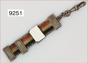 Herren Zylindertaschenuhr, B & V, Silber 800/000, mit orig. Kette und Schlüssel, Ankerhemmung, 10 Rubine, E.Z. beschädigt, arab. Zahlen, kl. Sekunde auf 6 Uhr, D = 46,5 mm, Uhr läuft