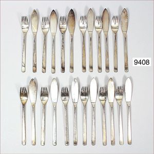 Fischbesteck für 12 Personen, WILKENS, Silber 800/000, 12 Gabeln, 12 Messer, L = 18,0 - 20,5 cm total 1,058 kg