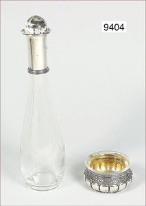 Lot: Glas-Fiole WMF mit versilbertem Abschluß und Glasstöpsel, H = 19,5 cm; kl. Schälchen WMF versilbert, Glaseinsatz, D = 55,5 mm, H = 27,5 mm