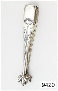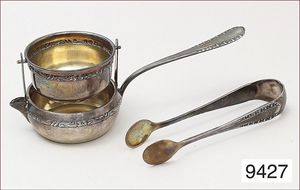 Lot: Teesieb u. Zuckerzange, LUTZ u. WEIß Pforzheim, Silber 800/000, Teesieb teilvergoldet, L = 15,2 cm, Zuckerzange L = 10,8 cm, total 100 g