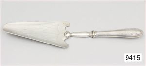 18 teiliges Kuchenbesteck, ROSENTAL " ROMANZE", Entwurf von BjörnWinnblad um 1960, Silber 925/000, je 8 Kuchengabeln u. Kaffeelöffel, 1 Sahnelöffel, 1 Kuchenheber, L = 13,5 u. 22,5 cm, total 0,554 kg