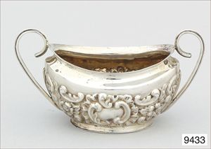 Miniterrine, Birmingham um 1900, Sterlingsilber 925/000, gemarkt, Meisterpunze: M.Bro, innen vergoldet, 9,2 x 4,8 x 4,5 cm