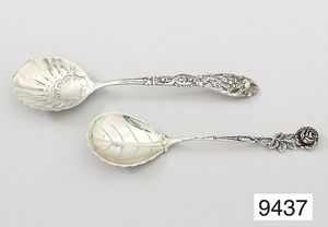 Lot: 2 Sahnelöffel, Rosenlöffel Silber 800/000, WMF, ca. 15,5 cm, ca. 20 g,1 Löffel, 800/00, Muscheldekor 17,5 cm, ca. 34 g