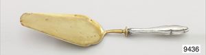 Vorlege-Löffel, WILHELMINISCH um 1900, Silber 800/000, teilvergoldet, Laffel: feine florale Gravur, schwere Ausführung, H = 19,7 cm, 63 g