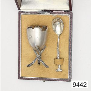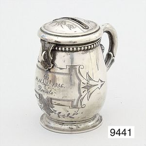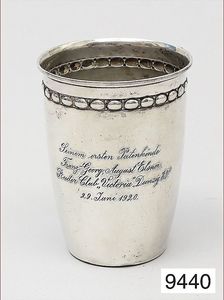 Verbindungsbecher 1920, Ag 800/000, Punze: M.S.T.&S., Gravur vorne: Seinem ersten Patenkinde Franz-Georg, August Elsner. Ruder Club "Victoria" Danzig EV 29 Juni 1920, D = 60 mm, H = 79 mm,