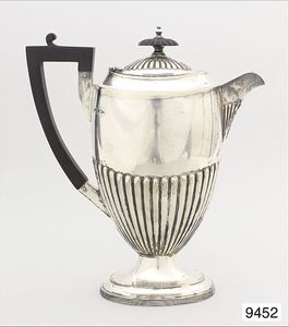 Kanne Sheffield um 1915/20, silver plated, Griff schwarz, Deckel Abschluß Ebenholz, schöne leicht ovale Form, H = 24,5 cm