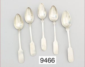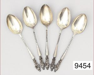 Besteck: WMF, Silber 800/000, 4 Gabeln 5 Messer, 5 Eßlöffel, L = 20,0 - 21,5 cm, 5 x Kaffelöffel ( 1 x Wilkens), L = 13,7 cm, total 0,936 kg